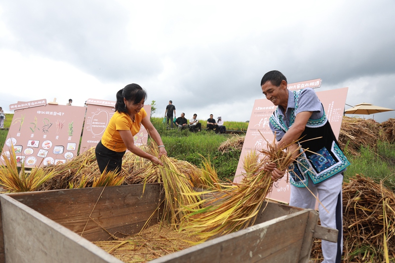 “刚刚体验了打稻谷,体会到农民伯伯的辛苦劳作,也感受到丰收的喜悦。”来自贵阳的游客何玖琼说。