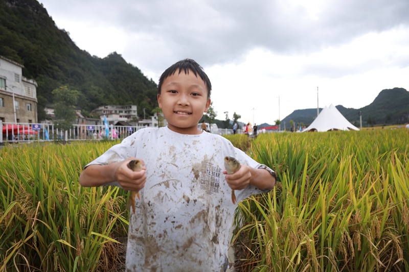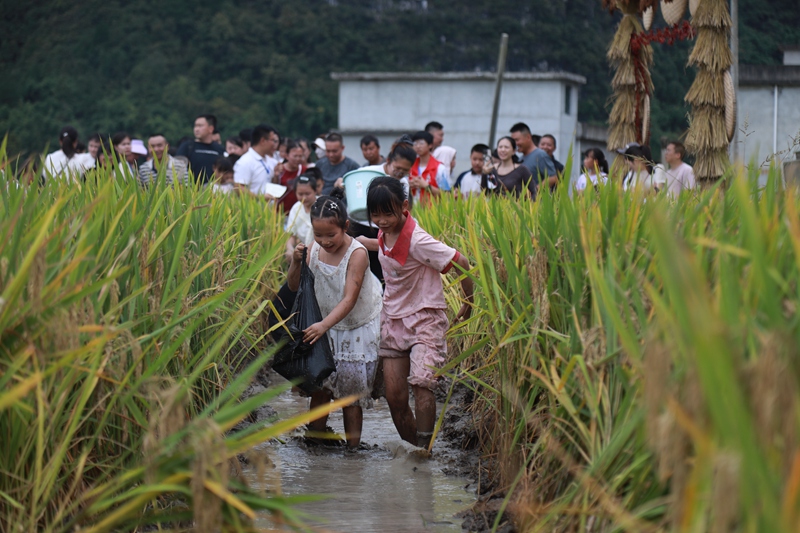 摸鱼大赛更是嗨翻田间。在水田区,孩子们拿上“装备”,赤脚下田,鱼儿在水中灵活穿梭,孩子们的小手在水中摸索,每抓到一条鱼,便兴奋地欢呼雀跃,享受抓鱼的乐趣。